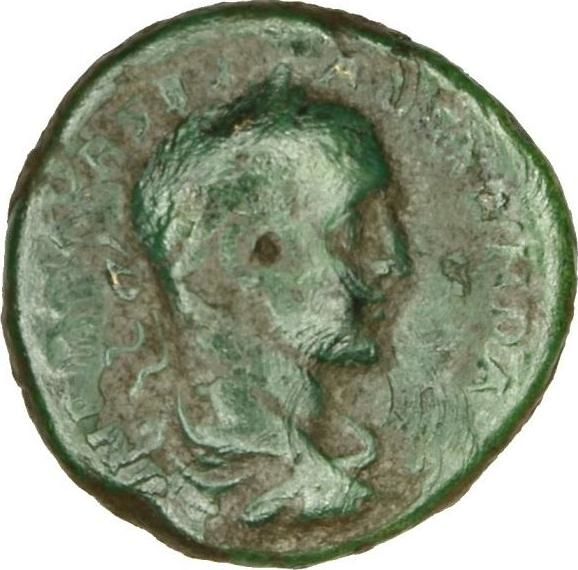 laureate, draped and cuirassed bust of Severus Alexander, right, seen from rear |