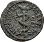 laureate, draped and cuirassed bust of Severus Alexander, right, seen from rear