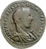 Undated but the obverse indicates year 277. ΑΥ Κ ΑΛƐΞΑΝΔΡΟΝ ΑΡΧ Μ ΟΙΚ Κ ΑϹΚΛ = ΑΥ Κ ΑΛƐΞΑΝΔΡΟΝ ΑΡΧ(ΙƐΡƐΑ) Μ(ƐΓΙϹΤΟΝ) ΟΙΚ(ΟΥΜƐΝΗϹ) Κ(ΑΙ) ΑϹΚΛ(ΗΠΙΟΥ). P. Weiss, 'Ein Altar für Gordian III., die älteren Gordiane und die Severer aus Aigeai (Kilikien)', Chiron 12 (1982), pp. 191-205, at 198-203 (uncertain of the reading). Levante read the legend of the die in the SNG France volume: 'the greatest high priest of the inhabitable world and of Asclepius.'