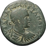 laureate, draped and cuirassed bust of Severus Alexander, right, seen from rear