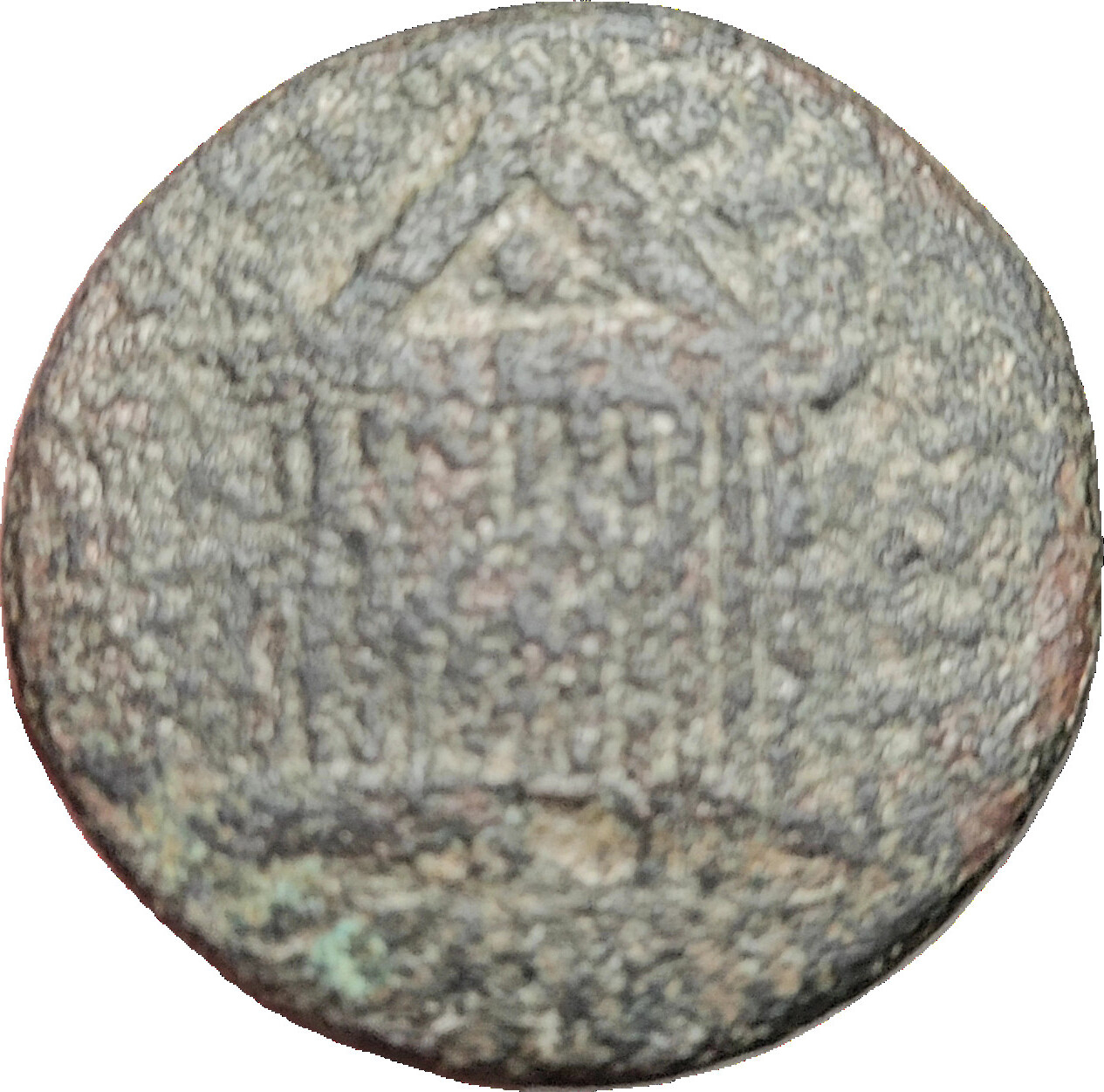 ΑΝΑΖΑΡΒΟΥ ΜΗΤΡΟ, ƐΝΔ (to l. of temple) , Β Γ (retrograde) (to r. of temple), ƐΤ ΗΜϹ