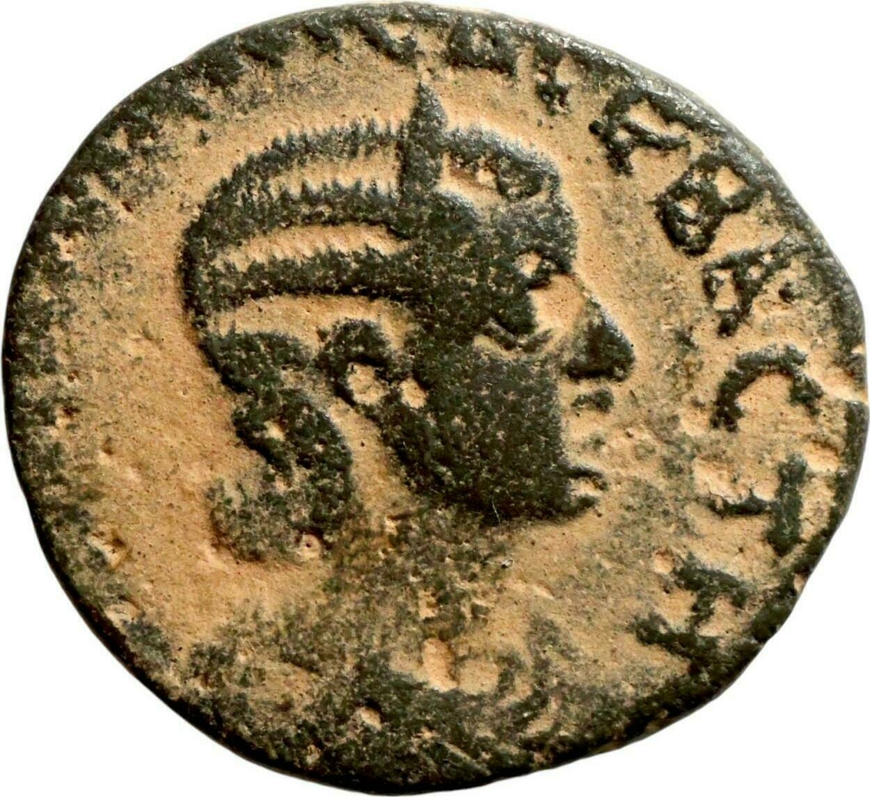 diademed and draped bust of Julia Mamaea, right