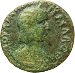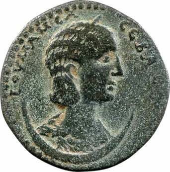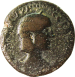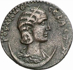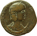 diademed and draped bust of Julia Mamaea, right, on crescent