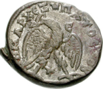 eagle standing facing, head left, holding wreath in beak and spreading wings; star between legs |