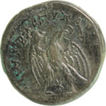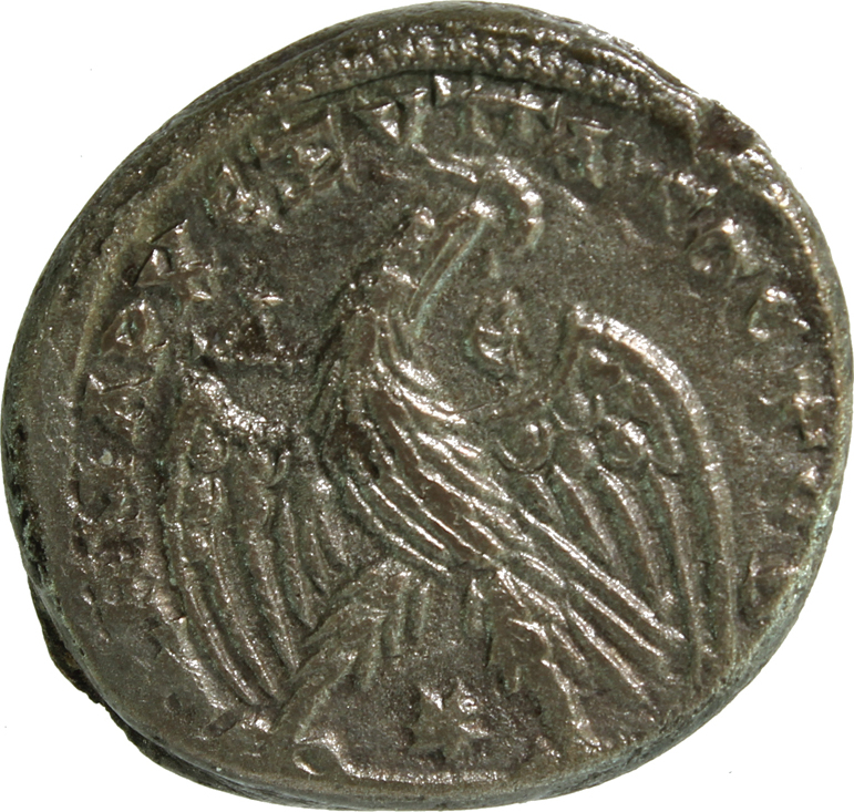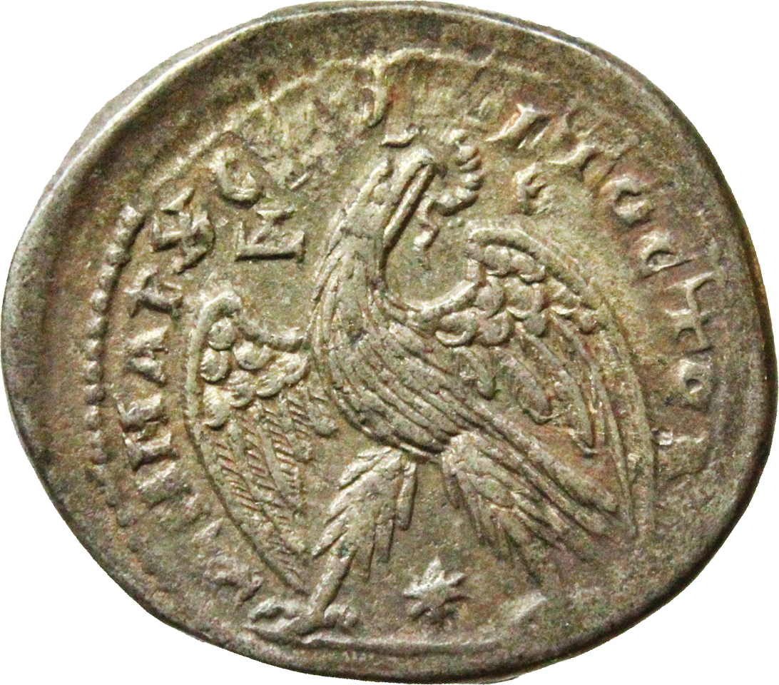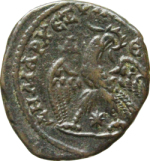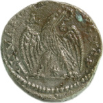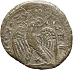 eagle standing left, head right, holding wreath in beak and spreading wings; star between legs |