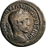 laureate, draped and cuirassed bust of Maximinus, right, seen from rear