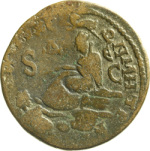 Tyche of the City seated on rock, left, holding corn ears; below, river god Orontes swimming, left, looking back; above, ram leaping, left, looking back, with star above