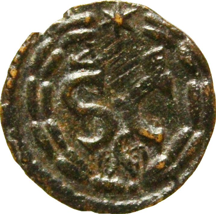 within laurel wreath; below, eagle facing, spreading wings, head right; (above, in wreath, star)