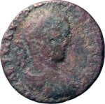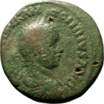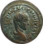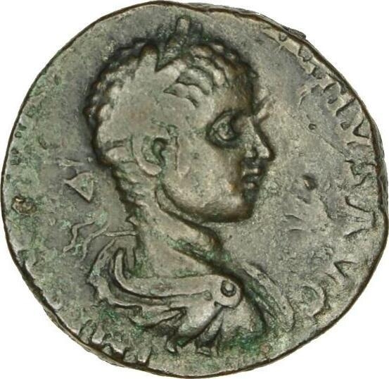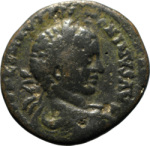 laureate, draped and cuirassed bust of Elagabalus, right, seen from rear