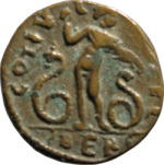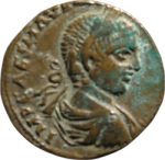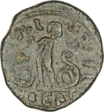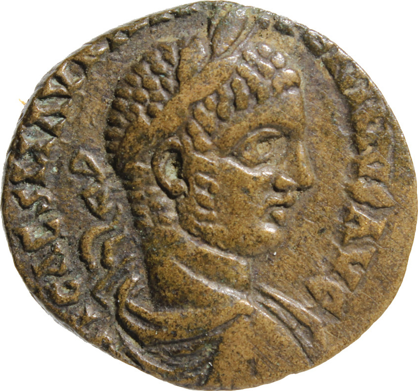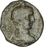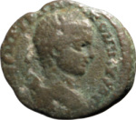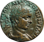 laureate, draped and cuirassed bust of Elagabalus, right, seen from rear |