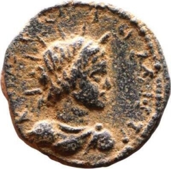 radiate and draped bust of Helios, right