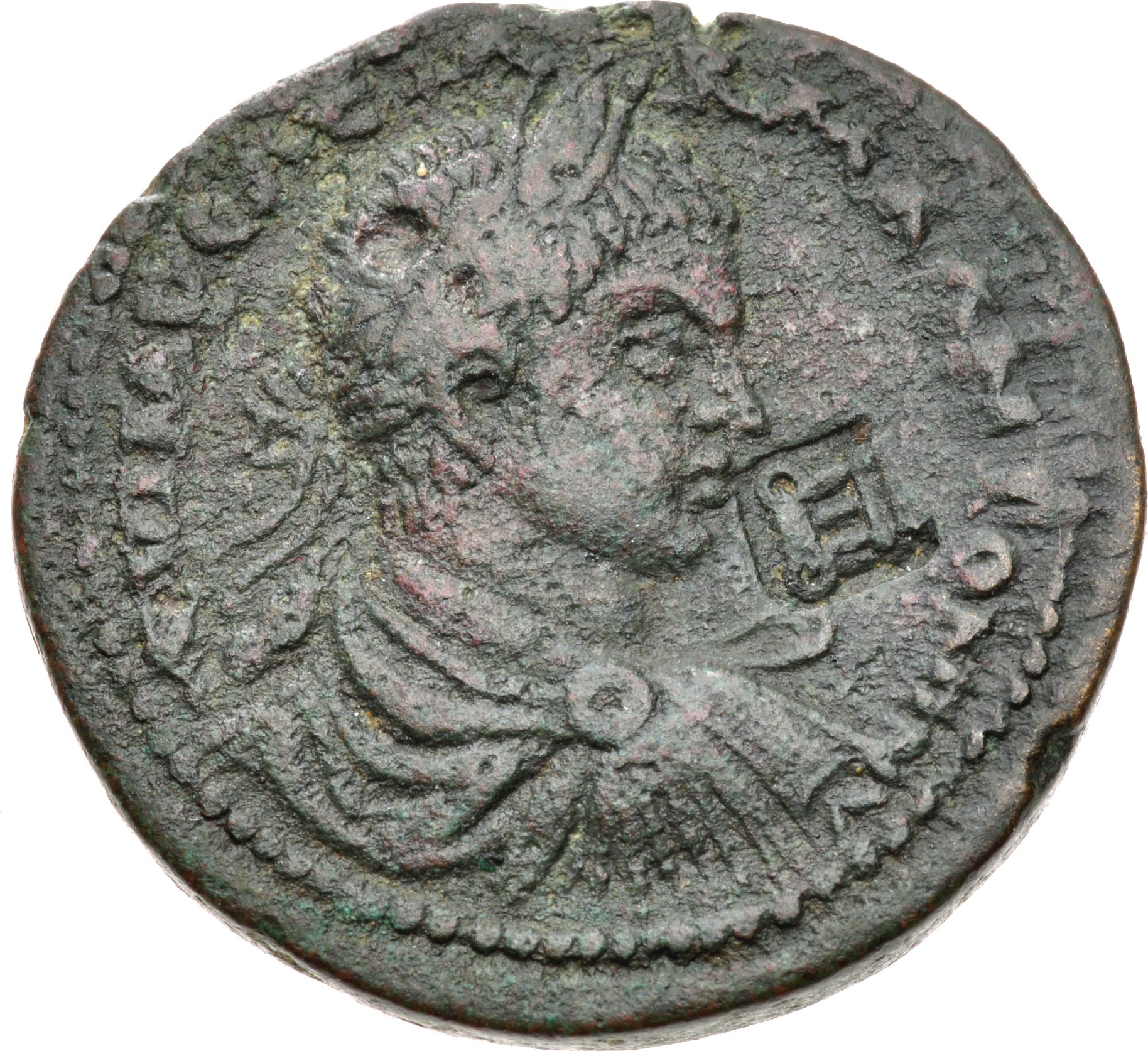 laureate, draped and cuirassed bust of Elagabalus, right, seen from rear |