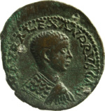 bare-headed and cuirassed bust of Severus Alexander, right, seen from rear