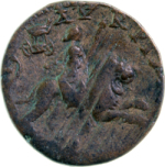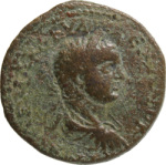 laureate, draped and cuirassed bust of Severus Alexander, right, seen from rear |