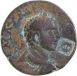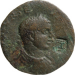 laureate, draped and cuirassed bust of Severus Alexander, right, seen from rear |