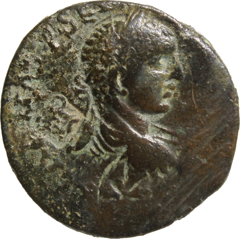 laureate, draped and cuirassed bust of Severus Alexander, right, seen from rear |