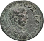 laureate, draped and cuirassed bust of Severus Alexander, right, seen from rear
