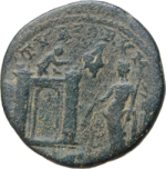 laureate and cuirassed bust of Elagabalus, right, seen from rear