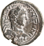 laureate, draped and cuirassed bust of Elagabalus, right, seen from front