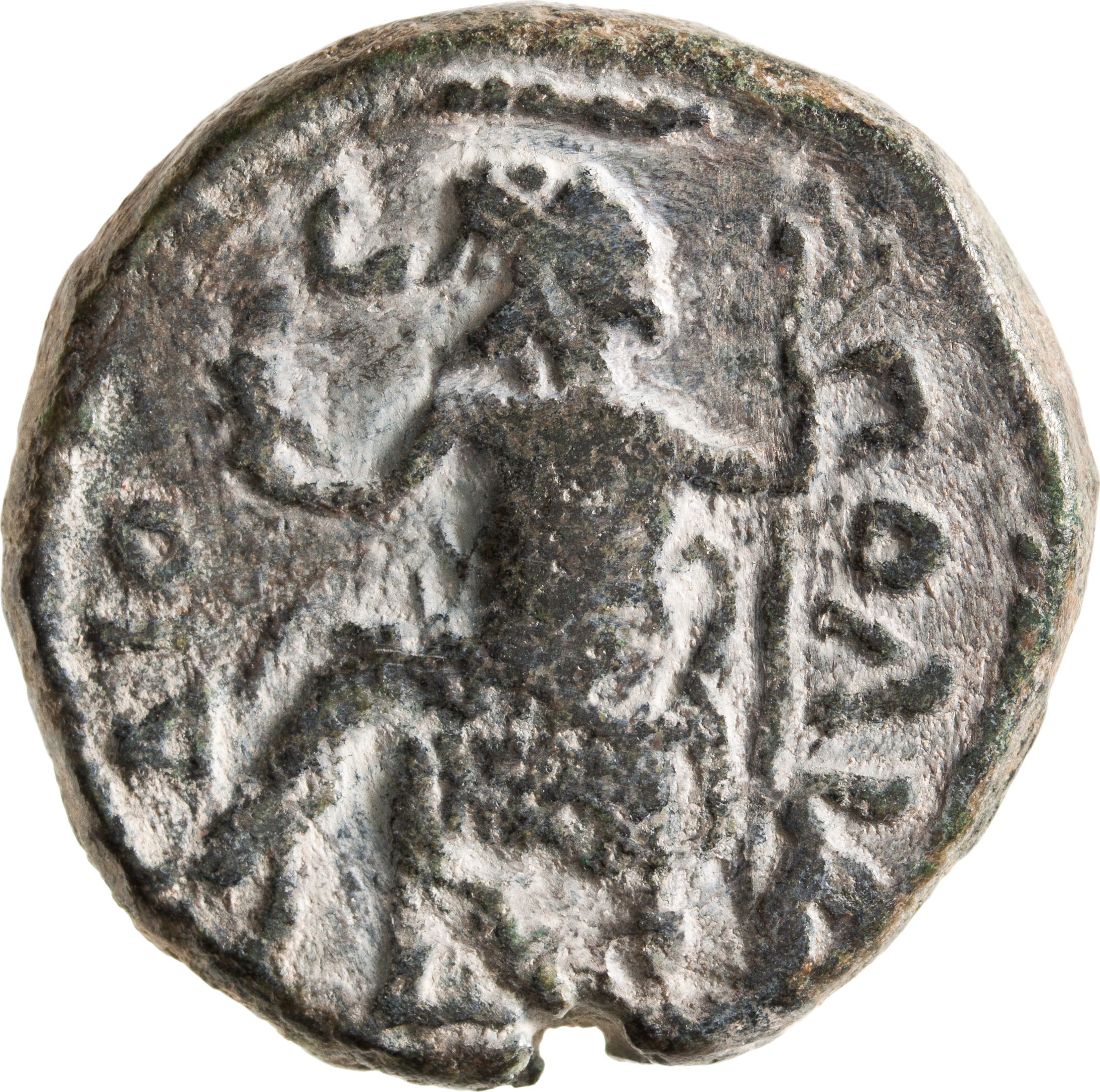 Zeus seated left, left hand resting on sceptre and small Nike on right extended hand