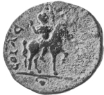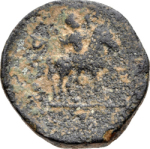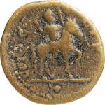 emperor on horseback advancing, right, wearing chlamys and saluting; in the exergue, wine cup |