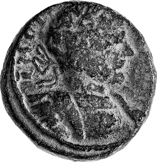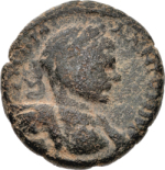 laureate bust of Elagabalus, right, wearing decorated cuirass, seen from front