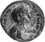 bare-headed draped and cuirassed bust of Severus Alexander, left