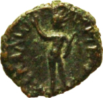 Helios standing nude facing, head left, holding chlamys and flail, and raising hand
