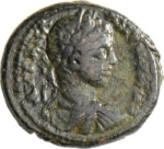 laureate, draped and cuirassed bust of Elagabalus, right, seen from rear