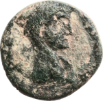laureate, draped and cuirassed bust of Elagabalus, right, seen from rear