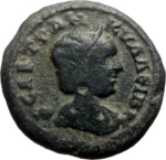 diademed and draped bust of Tranquillina, right