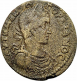 laureate, draped and cuirassed bust of Gordian III, right, seen from front