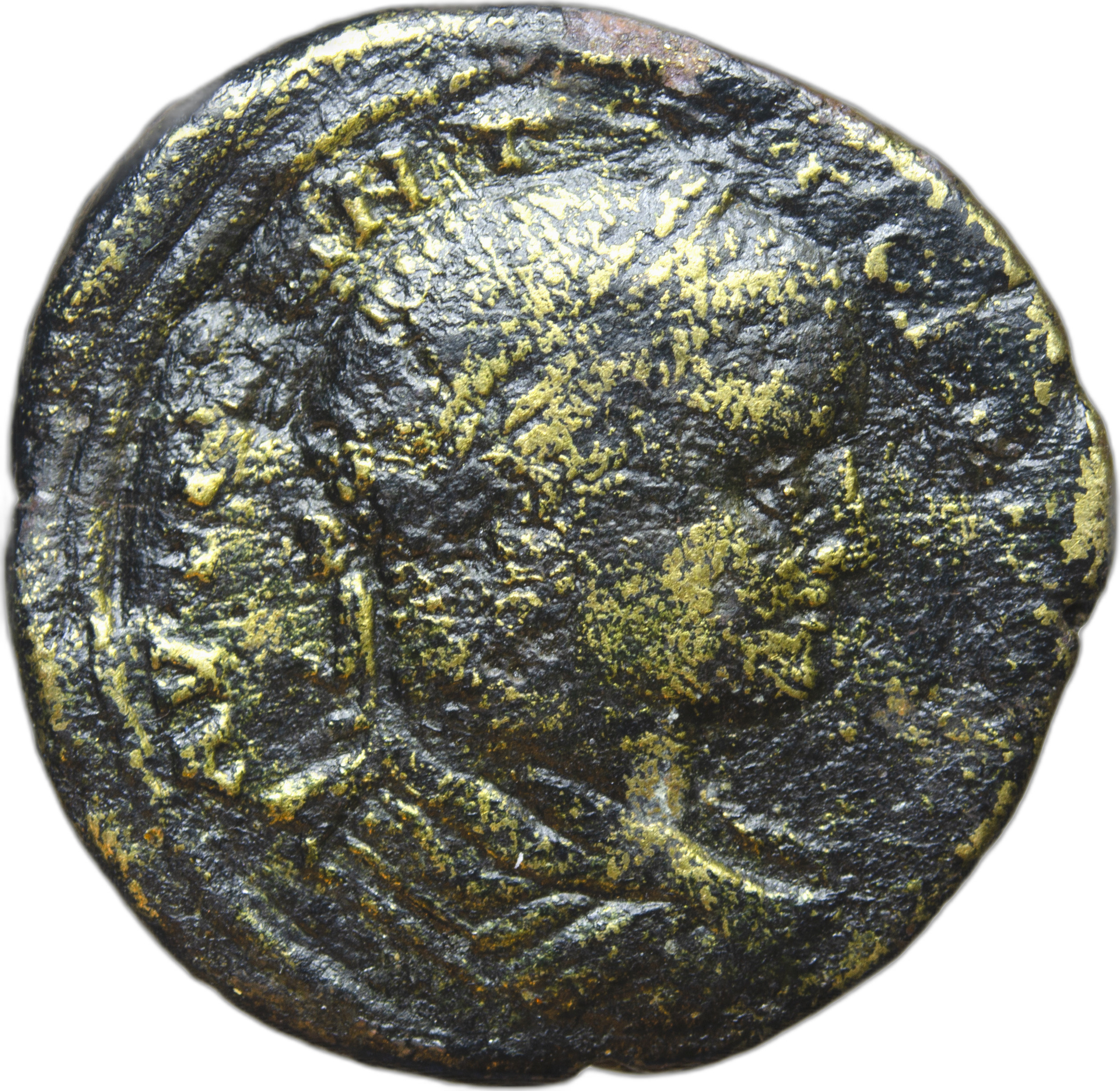 laureate, draped and cuirassed bust of Gordian III, right, seen from rear