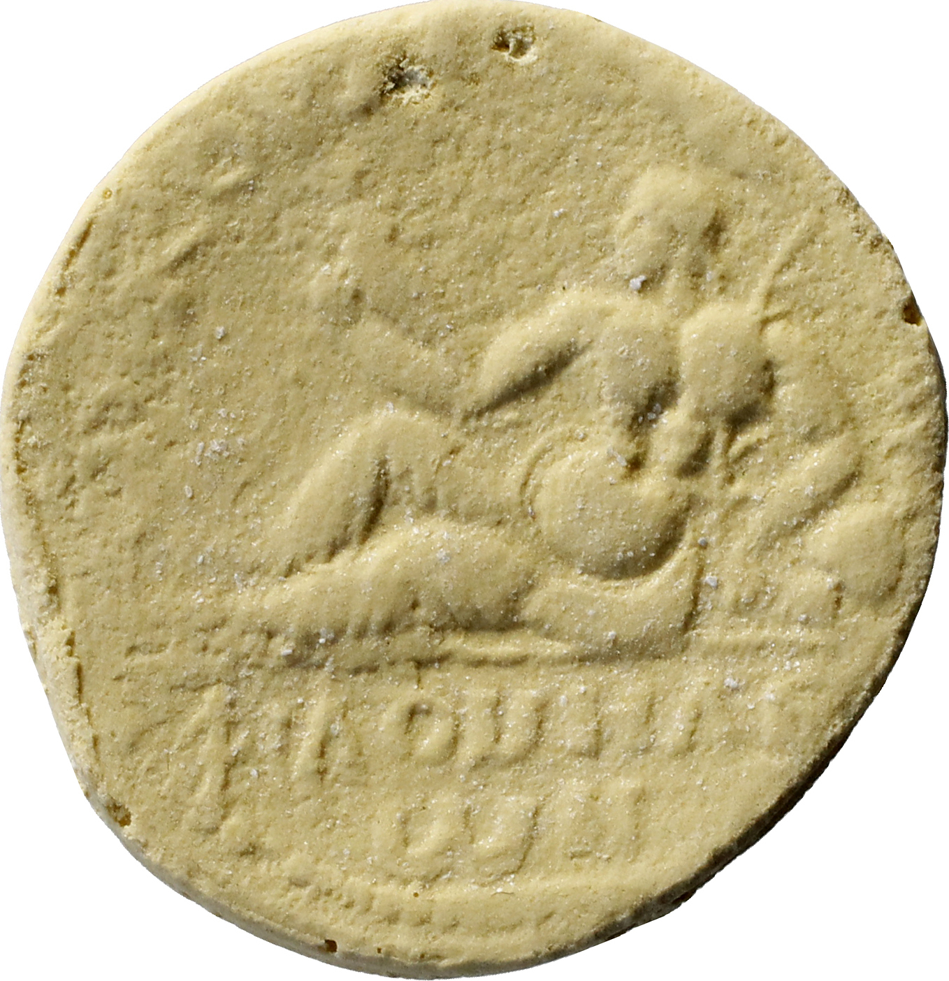 river god Gallos sitting left, holding cornucopia and reed, resting on water urn |