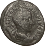 laureate, draped and cuirassed bust of Gordian III, right, seen from rear