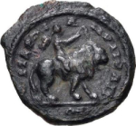 Eros, holding whip, on lion advancing right