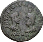 confronted busts of Gordian III, laureate, draped and cuirassed, right, seen from front, and Sarapis, draped, left, with cornucopia behind him