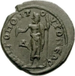 Zeus standing left, holding patera and sceptre