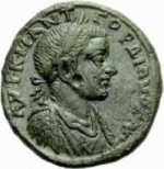laureate, draped and cuirassed bust of Gordian III, right, seen from front |