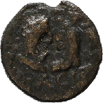confronted busts of Ininthimeus, laureate and draped, right, seen from front, and a goddess, left, wearing kalathos