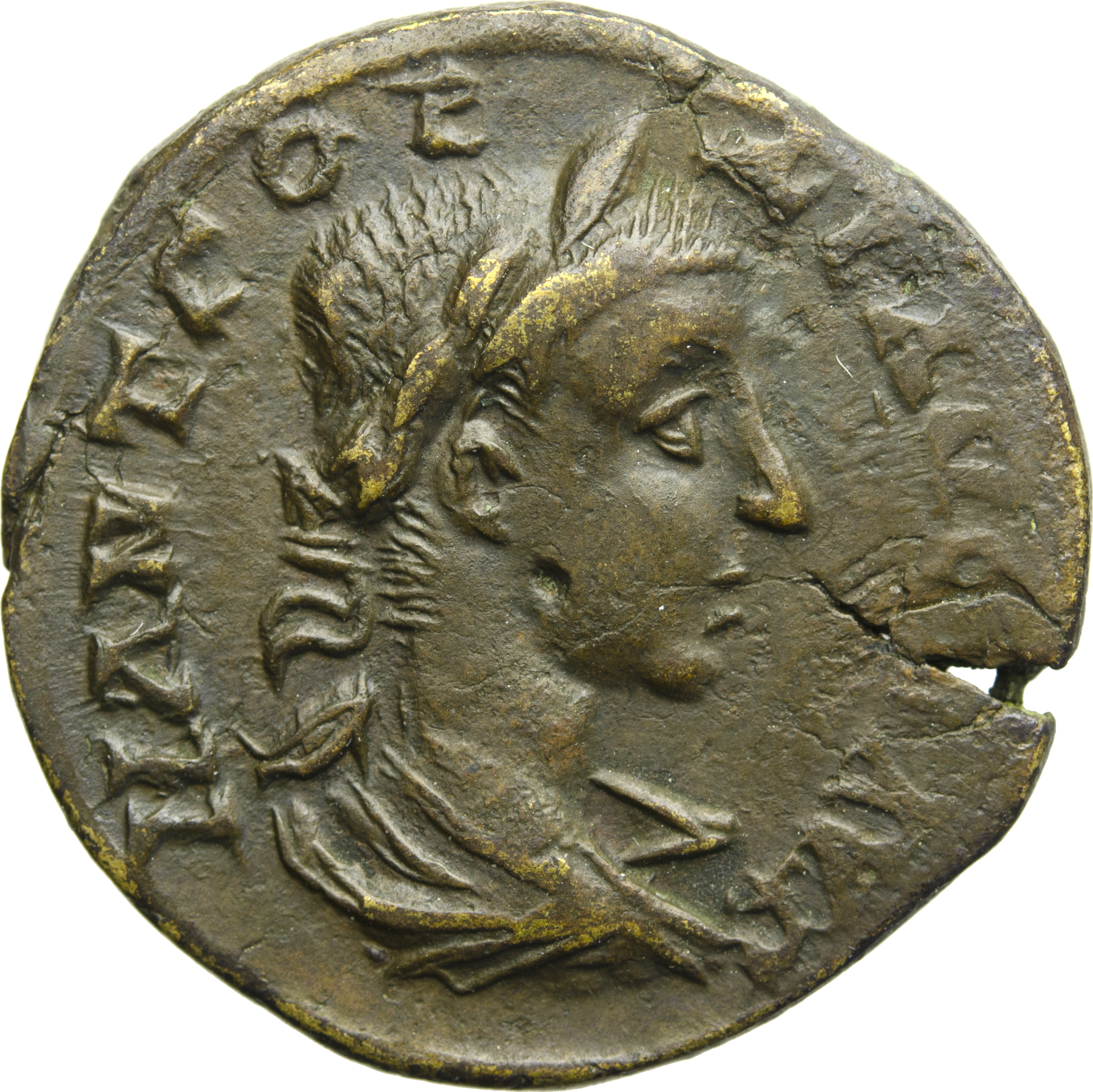 laureate, draped and cuirassed bust of Gordian III, right, seen from rear