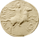 horseman galloping right, brandishing spear