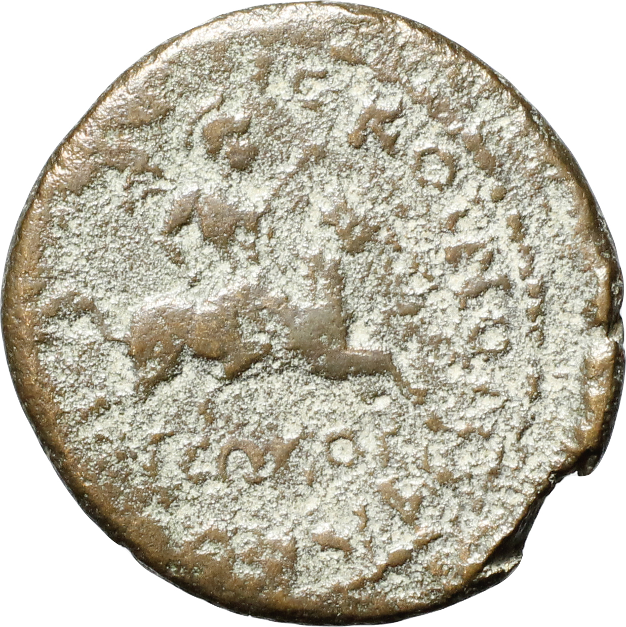 Alexander the Great riding Bucephalus galloping right, holding spear