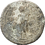 Perseus standing left, holding Medusa head, harpa and chlamys |