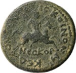 Alexander the Great riding Bucephalus galloping right, holding spear