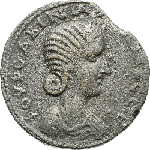 diademed and draped bust of Tranquillina, right