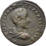 laureate, draped and cuirassed bust of Gordian III, right, seen from rear |