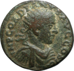 radiate, draped and cuirassed bust of Gordian III, right, seen from front