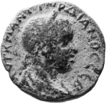 laureate, draped and cuirassed bust of Gordian III, right, seen from rear |