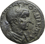 laureate, draped and cuirassed bust of Gordian III, right, seen from front |